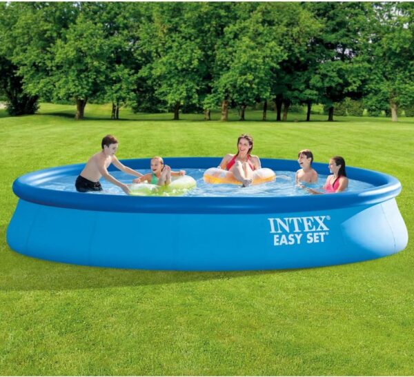 Dzięki basenowi Easy Set marki Intex schłodzisz się w letnie dni w swoim własnym ogrodzie! Basen można bez trudu rozstawić i przygotować do napełnienia wodą w zaledwie 10 minut. Odporny na przebicie, 3-warstwowy materiał zapewnia wytrzymałość i trwałość. Górny, nadmuchiwany pierścień gwarantuje bezpieczeństwo Twoim dzieciom. Co więcej pompa z filtrem w postaci kartridża o przepływie 2271 L (600 gal) dołączona do basenu Easy Set i utrzymuje wodę świeżą i czystą przez całe lato!
